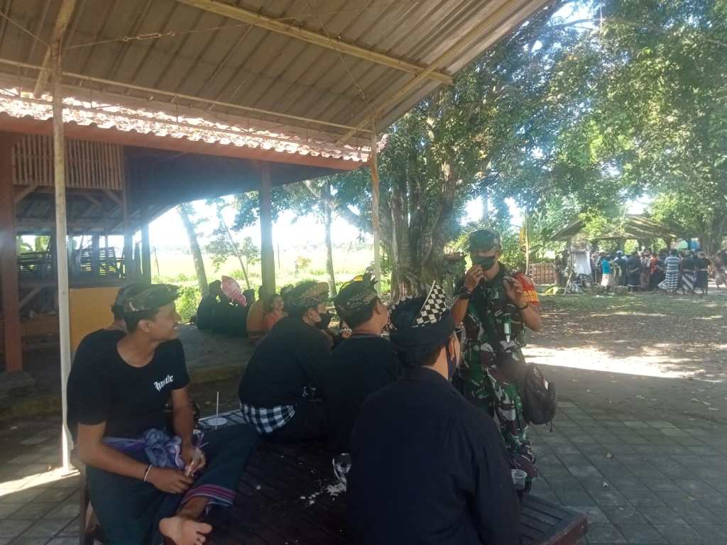 Seperti yang dilakukan oleh Babinsa Kelurahan Tegalcangkring Koramil 02/Mendoyo Serda Suwardi saat melaksanakan pengamanan dalam kegiatan upacara Manusia Yadnya (Ngaben) salah satu warga di Setra Delod Bale Agung, Kelurahan Tegalcangkring, dirinya kembali mengajak warga yang hadir untuk mematuhi protokol kesehatan dalam pelaksanaan upacara tersebut, Selasa (31/05/2022)