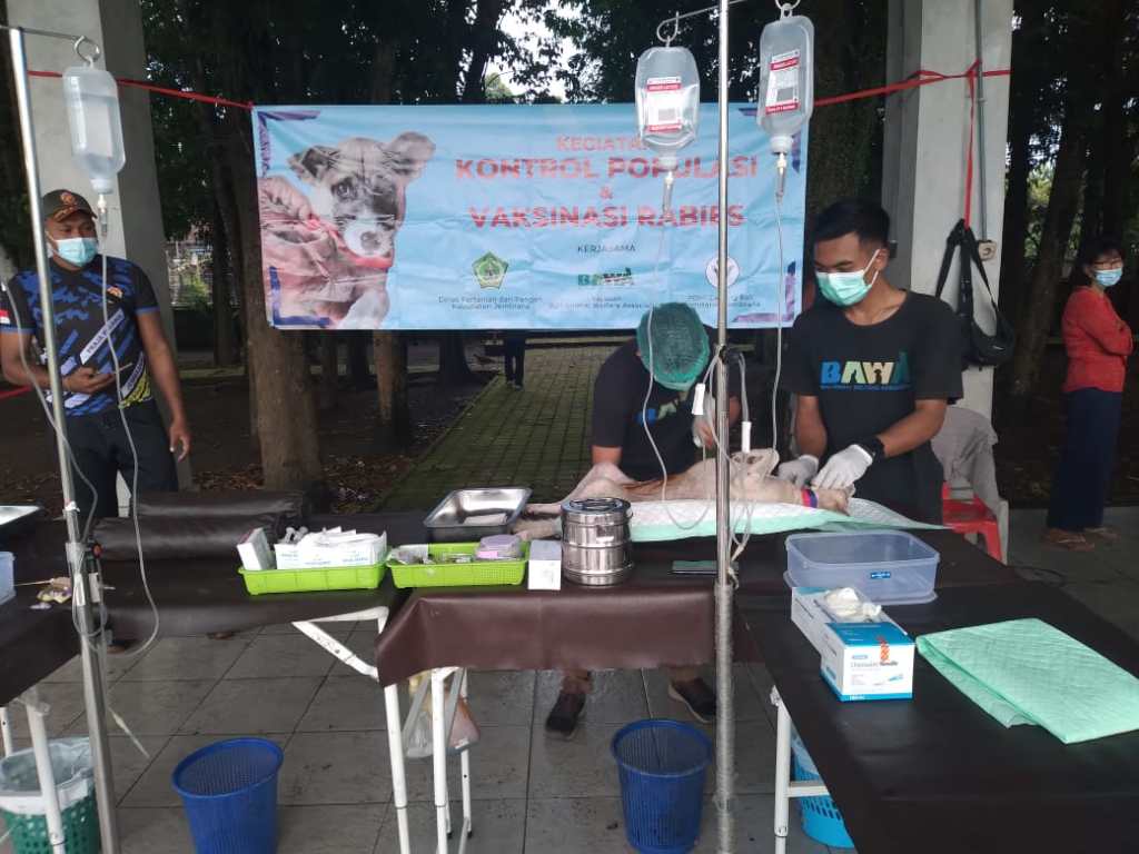 Kali ini kegiatan sterilisasi hewan penular rabies (HPR) digelar Dinas Pertanian dan Pangan Kabupaten Jembrana bekerjasama dengan Yayasan Bali Animal Welfare Association (BAWA) dan PHDI Cabang Bali Komisariat Jembrana. Sterilisasi HPR dilakukan dalam bentuk pelayanan kesehatan hewan, kontrol populasi dan vaksinasi rabies dengan sasaran anjing dan kucing lokal, Rabu (01/06/2022)