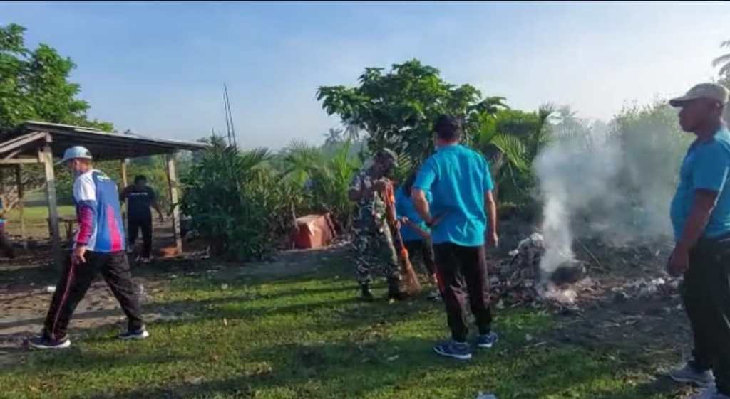 Aksi pembersihan lingkungan yang dilakukan oleh Babinsa Desa Banyubiru bersama Aparat Pemerintah Desa bersama warga bahu membahu membersihkan sampah organik maupun non organik di areal pantai Pebuahan yang merupakan salah satu lokasi destinasi lokal wisata kuliner yang ada di wilayah Kecamatan Negara, Sabtu (04/06/2022)