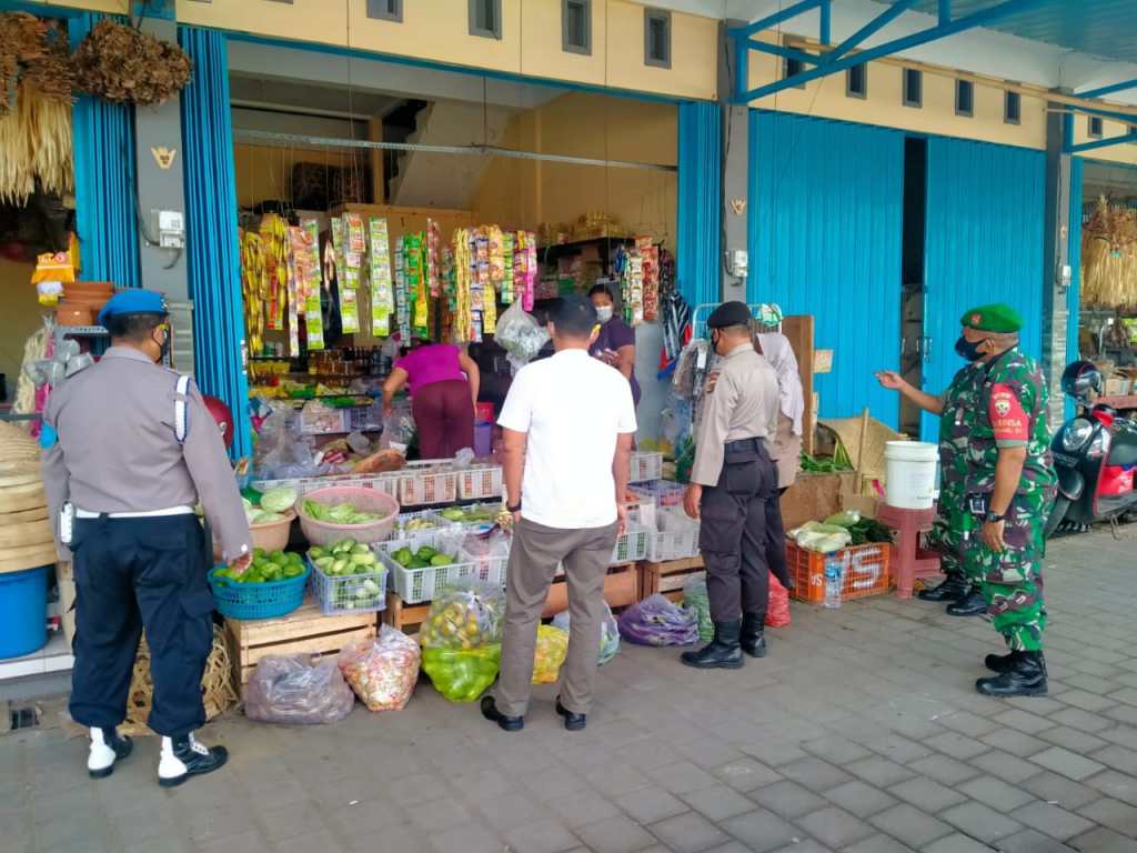 Kali ini patroli bersama pendisiplinan Protkes digelar dengan menyasar pasar tradisional Kelurahan Banjar Tengah. Secara humanis Personel Koramil 1617-01/Negara bersama Personel Polsek Negara menghimbau para pedagang maupun pengunjung yang sedang melaksanakan aktivitasnya agar senantiasa mematuhi protokol kesehatan diantaranya untuk selalu menggunakan masker, mencuci tangan, menjaga jarak, mengurangi mobilitas dan interaksi serta menghindari kerumunan guna mengantisipasi penularan dan penyebaran Covid-19.