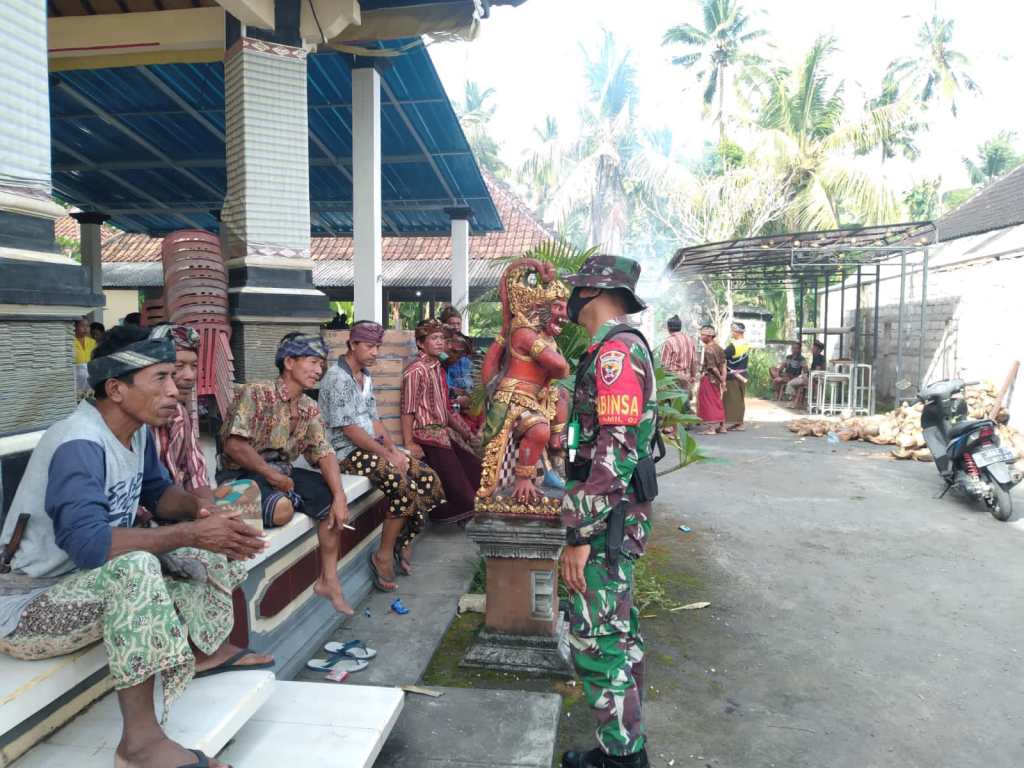Kodim 1617/Jembrana | Ditengah aktivitas warga saat upacara keagamaan, penerapan protokol kesehatan dimasa pandemi Covid-19 saat ini tetap menjadi hal yang wajib untuk patuhi dan diterapkan. Untuk itu Babinsa bersama aparat terkait hadir ditengah warga untuk meyakinkan penerapan protokol kesehatan tetap dipatuhi.