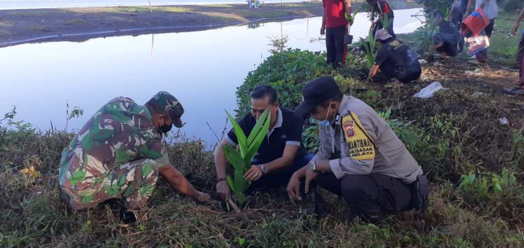 Kodim 1617/Jembrana | Babinsa Desa Nusasari Koramil 1617-03/Melaya Sertu Made Sukartana bersama aparat desa dan warga melaksanakan kegiatan pembersihan lingkungan sekaligus aksi penanaman pohon. Aksi penanaman pohon tersebut dilakukan dalam rangka Bulan Bung KarnoTahun 2022, Rabu (15/06/2022)