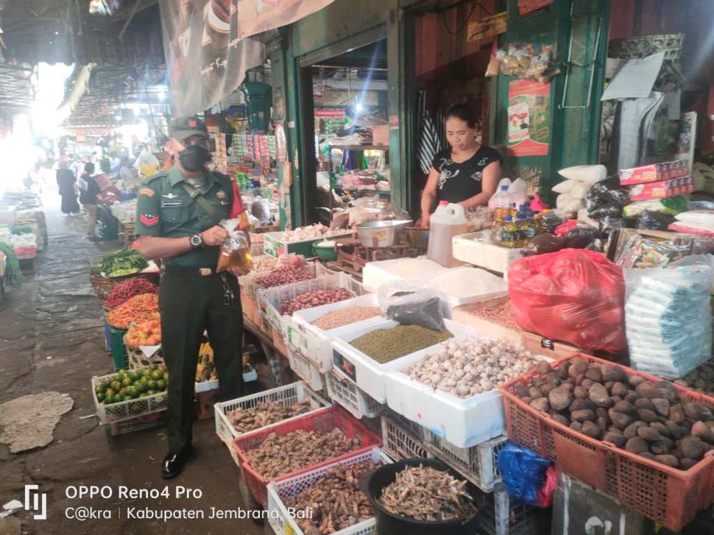 Kodim 1617/Jembrana | Babinsa jajaran Kodim 1617/Jembrana secara konsisten terus melakukan pendataan dan pemantauan harga minyak goreng curah dimasing masing wilayah binaannya. Hal tersebut dilakukan untuk menindaklanjuti instruksi Pemerintah dari Komando Atas guna mengantisipasi harga minyak goreng curah melebihi HET yang telah ditentukan serta mengantisipasi terjadinya kelangkaan minyak goreng.