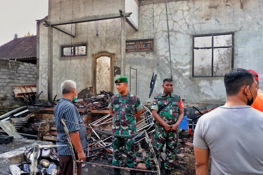 Kodim 1617/Jembrana | Naas nasib Ni Nyoman Parisadi, 55 tahun yang bertempat tinggal Jalan Pulau Komodo No 7, Linkungan Dauhwaru, Kelurahan Dauhwaru, Kec/Kab. Jembrana, saat membakar sampah di timur rumahnya tepatnya didekat gudang kayu miliknya, setelah selesai membakar sampah ditinggal pergi, Sabtu (09/07/2022). Mengira api sudah padam Korban meninggalkan sisa bakaran sampah, saat itu angin yang berhembus cukup kencang membuat sisa bakaran tersebut menyala dan menyambar kayu di gudang tersebut, apipun membesar dan membakar gudang, rumah beserta isinya.
