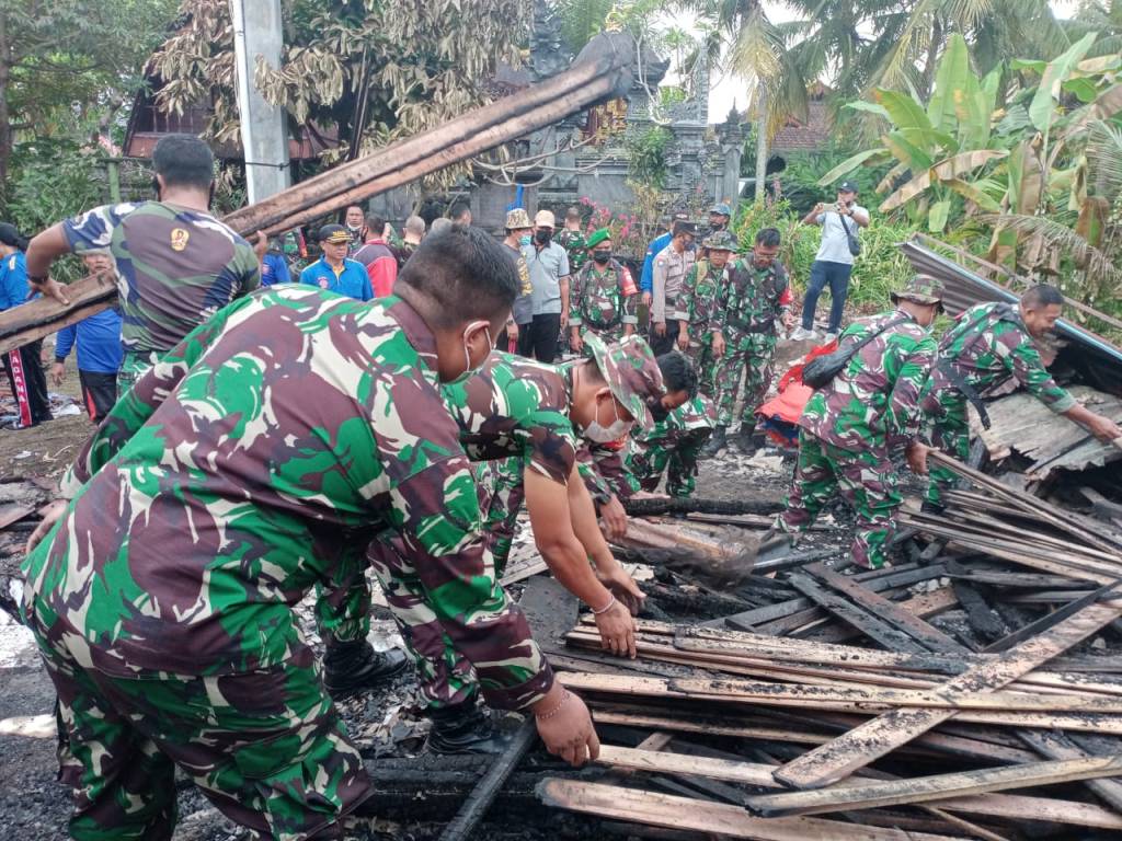 Danramil 1617-01/Negara yang memimpin langsung pembersihan puing-puing sisa kebakaran mengatakan turut prihatin atas musibah yang dialami oleh salah satu warganya. Sebagai bentuk keprihatinan serta untuk meringankan beban yang dialami korban, Kodim 1617/Jembrana atas perintah langsung Dandim 1617/Jembrana mengerahkan personelnya untuk melaksanakan kerja bakti membersihkan puing puing sisa kebakaran.