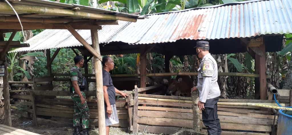 Jembrana | Babinsa jajaran Kodim 1617/Jembrana secara konsisten terus melakukan upaya pencegahan penyebaran penyakit kaki dan mulut (PMK) yang sedang mewabah. Selain melakukan pendataan ternak milik warga, memberikan pendampingan vaksinasi dan spraying, para Babinsa juga secara aktif memberi edukasi dan sosialisasi tentang bahaya PMK bagi hewan ternak.