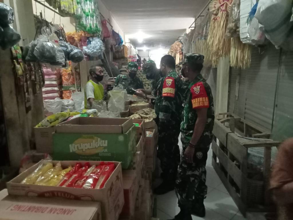 “Secara rutin kita terus menggelar patroli gabungan untuk menghimbau kepada para Pedagang maupun pembeli yang sedang melaksanakan aktifitasnya agar senantiasa mematuhi Protokol Kesehatan diantaranya untuk selalu menggunakan masker, mencuci tangan, menjaga jarak, mengurangi mobilitas dan interaksi serta menghindari kerumunan guna mencegah penularan dan penyebaran Covid-19,” Ungkap Dandim Teguh