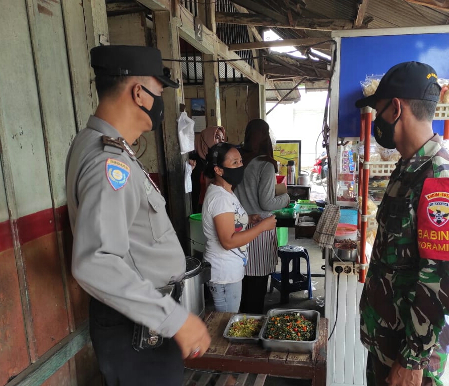 Seperti halnya Patroli bersama yang digelar, Kamis (25/08/2022) oleh Koramil 1617-01/Negara bersama Polsek Negara yang menyasar pasar tradisional diwilayah Kecamatan Negara. Secara humanis petugas terus mengingatkan dan mengajak para pedagang maupun pengunjung untuk tidak lengah terhadap bahaya Covid-19 dengan selalu mematuhi protokol kesehatan. Selain melakukan pendisiplinan Protkes terpantau petugas pun membagikan masker secara gratis.