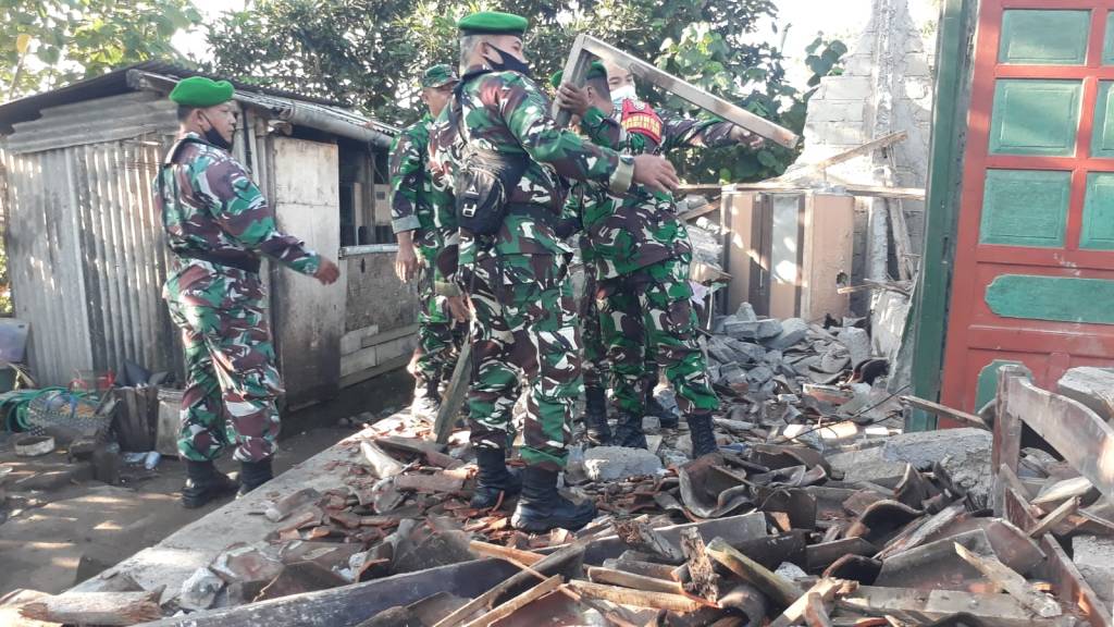 “Membantu kesulitan rakyat sebagai bentuk implementasi dari delapan wajib TNI, semoga bantuan tenaga yang kita berikan dapat meringankan beban korban,” lanjutnya