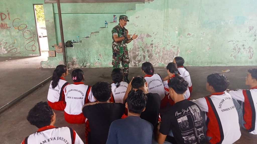 Jembrana | Persiapan secara matang dalam menghadapi lomba ketangkasan baris berbaris dilakukan oleh SMK Negeri 3 Negara. Dalam pemberian materi PBB pihak sekolah SMK Negeri 3 Negara melibatkan Anggota TNI dari Koramil 1617-02/Mendoyo sebagai instruktur. Tampak Anggota Koramil 1617-02/Mendoyo Serda Suwardi bersama satu orang rekannya memberikan pelatihan dan materi PBB kepada siswa siswi SMK Negeri 3 Negara, Senin (03/10/2022)