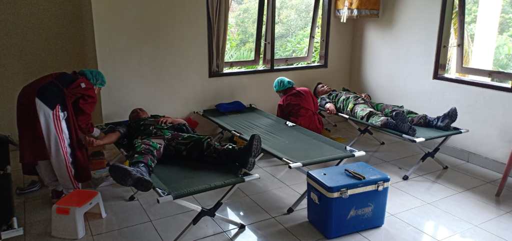 Pgs. Danramil 1617-03/Melaya Lettu Inf I Made Sujana Arianta bersama anggota Koramil 1617-03/Melaya. Dikesempatan tersebut Lettu Inf I Made Sujana bersama anggotanya turut menyumbangkan sekantong darahnya. Sebelum dilaksanakan pengambilan darah para pendonor menjalani serangkaian pemeriksaan kesehatan untuk bisa menyumbangkan darahnya.