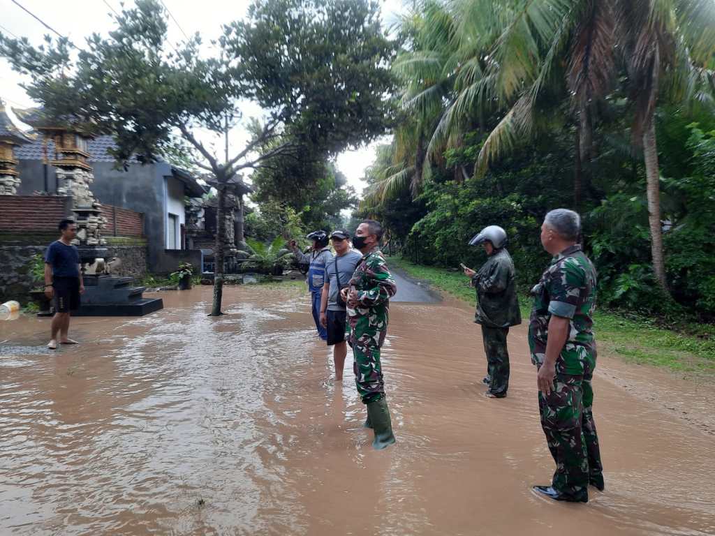 Menyikapi terjadinya hujan lebat yang menimbulkan terjadinya bencana alam, Babinsa jajaran Kodim 1617/Jembrana melakukan siaga diwilayah binaannya guna melakukan pemantauan wilayah. Dibawah guyuran air hujan, Babinsa jajaran Kodim 1617/Jembrna turun langsung sekaligus memantau perkembangan situasi serta mengantisipasi apabila luapan air hujan terus meningkat.