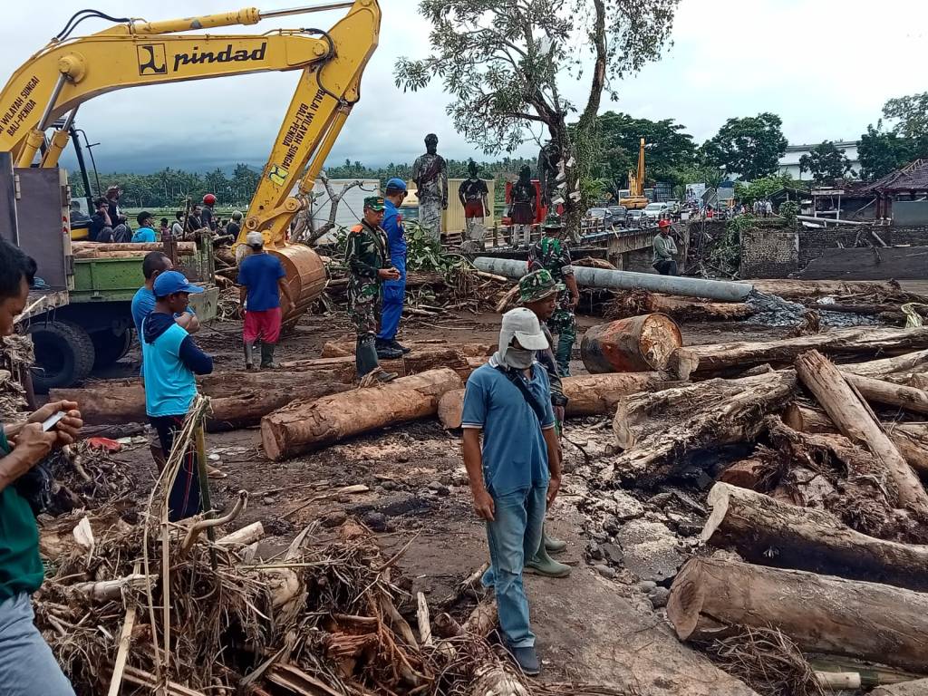 Sementara itu, puluhan personel juga dikerahkan untuk turut melakukan pembersihan material sisa banjir bandang yang terjadi di Desa Tegalcangkring tepatnya disungai Bilukpoh. Banjir bandang yang terjadi akibat luapan sungai Bilukpoh menjadi musibah bencana alam yang paling parah yang terjadi di wilayah Kabupaten Jembrana pasca terjadinya hujan lebat sejak hari minggu malam (16/10/2022) hingga keesokan harinya.