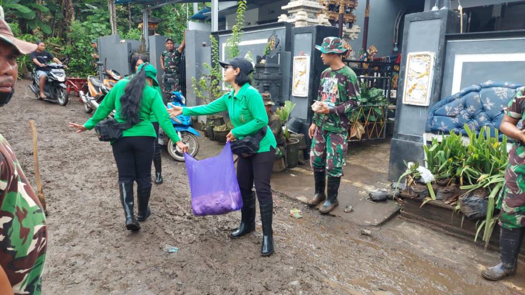 Dukungan moril Persit KCK Cabang XXXVI Dim 1617/Jembrana terhadap karya bhakti tersebut dengan menyiapkan logistik berupa ratusan nasi bungkus dan air mineral. Dukungan logistik untuk makan pagi dan makan siang diberikan kepada personel TNI maupun warga yang terlibat dalam aksi pembersihan lumpur.
