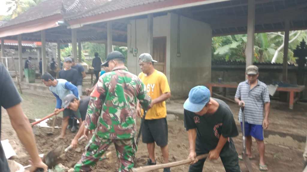 Hal tersebut dikatakan Babinsa Candikusuma Koramil 1617-03/Melaya Serka Dewa Budi Wilantara saat mengikuti gotong royong pembersihan tanah sisa banjir di Pura Dalem Sangiang, Banjar Tetelan, Desa Candikusuma, Kecamatan Melaya, Kabupaten Jembrana. Gotong royong tersebut diselenggarakan dalam rangka HUT STT Kusuma Bakti Desa Adat Candikusuma, Minggu (06/11/2022)