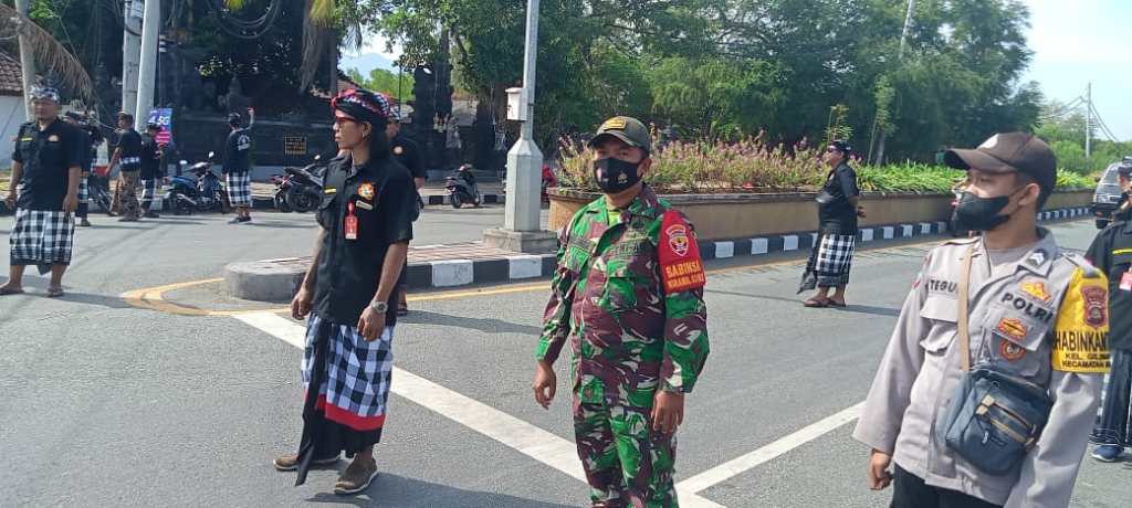 Jembrana | Babinsa Gilimanuk Koramil 1617-03/Melaya Serda Mohammad Adam turut memberikan pengamanan saat berlangsungnya pengabenan salah satu warga di desa binaan. Dalam melaksanakan pengamanan, Babinsa Gilimanuk bersinergi dengan Bhabinkamtibmas dan unsur pengamanan dari Pecalang Desa Adat setempat, Kamis (17/11/2022).