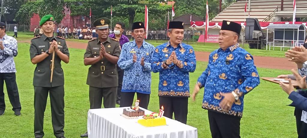 Dalam kesempatan ini, lanjut Bupati Tamba kita juga memperingati Hari Ulang Tahun PGRI Ke-77 dengan mengambil tema “Guru Bangkit Pulihkan Pendidikan : Indonesia Kuat, Indonesia Maju”. Tema ini merupakan ajakan kepada seluruh guru, tenaga pendidik maupun pemangku kepentingan untuk menjadi penggerak perubahan dalam mencerdaskan kehidupan bangsa serta penguatan pendidikan karakter anak bangsa. Kita semua berharap para guru dan tenaga kependidikan, menjadi pembelajar dan pendidik sejati, mampu mengembangkan diri secara mandiri, mampu sebagai sumber inspirasi dan keteladanan, serta senantiasa menegakkan kode etik guru.