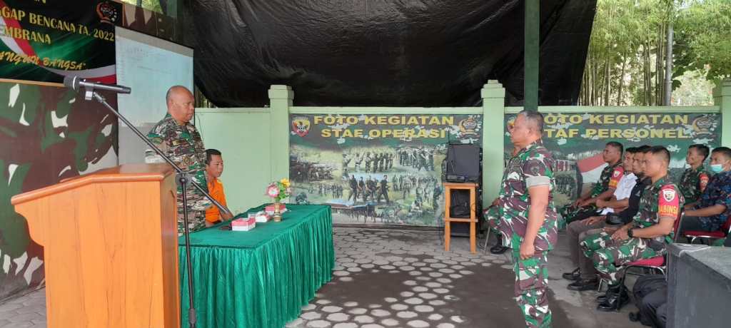 Jembrana | Kodim 1617/Jembrana menggelar kegiatan pembinaan masyarakat tanggap bencana Tahun 2022. Kegiatan yang berlangsung di Kantor Makodim 1617/Jembrana Jalan Ngurah Rai Nomor 135 Negara dibuka oleh Kasdim 1617/Jembrana Letkol Har I Gusti Made Seputra, Jumat (23/12/2022)