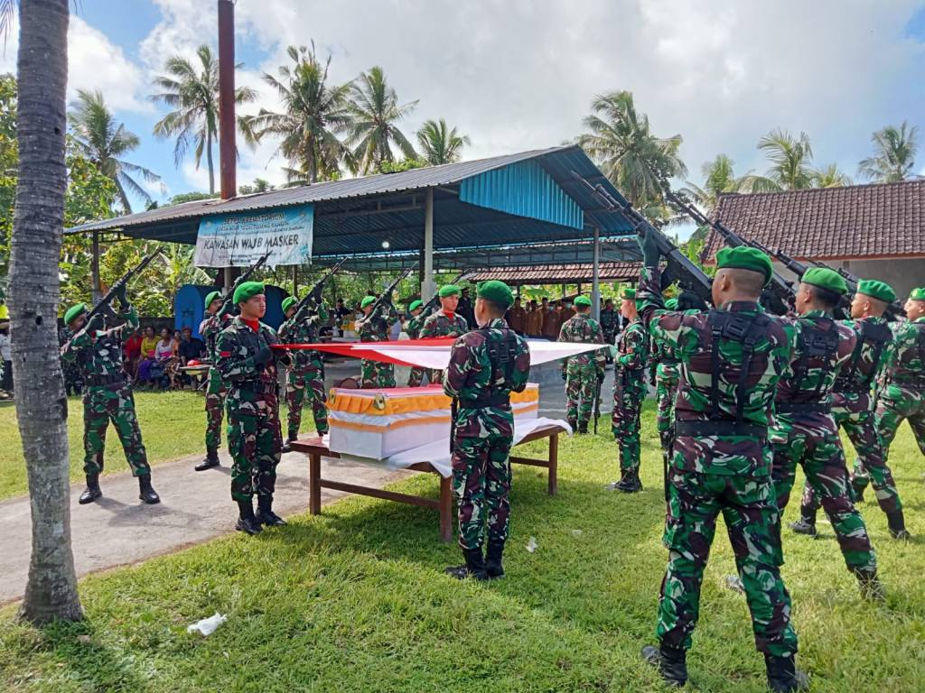 Jembrana | Kodim 1617/Jembrana menggelar upacara perabuan jenasah Anggota TNI AD Almarhum Sertu I Putu Wiadnyana. Upacara yang dilakukan secara militer berlangsung di Setra (kuburan) Desa Tegalbadeng Barat, Kecamatan Negara Kabupaten Jembrana, Sabtu (07/01/2023)