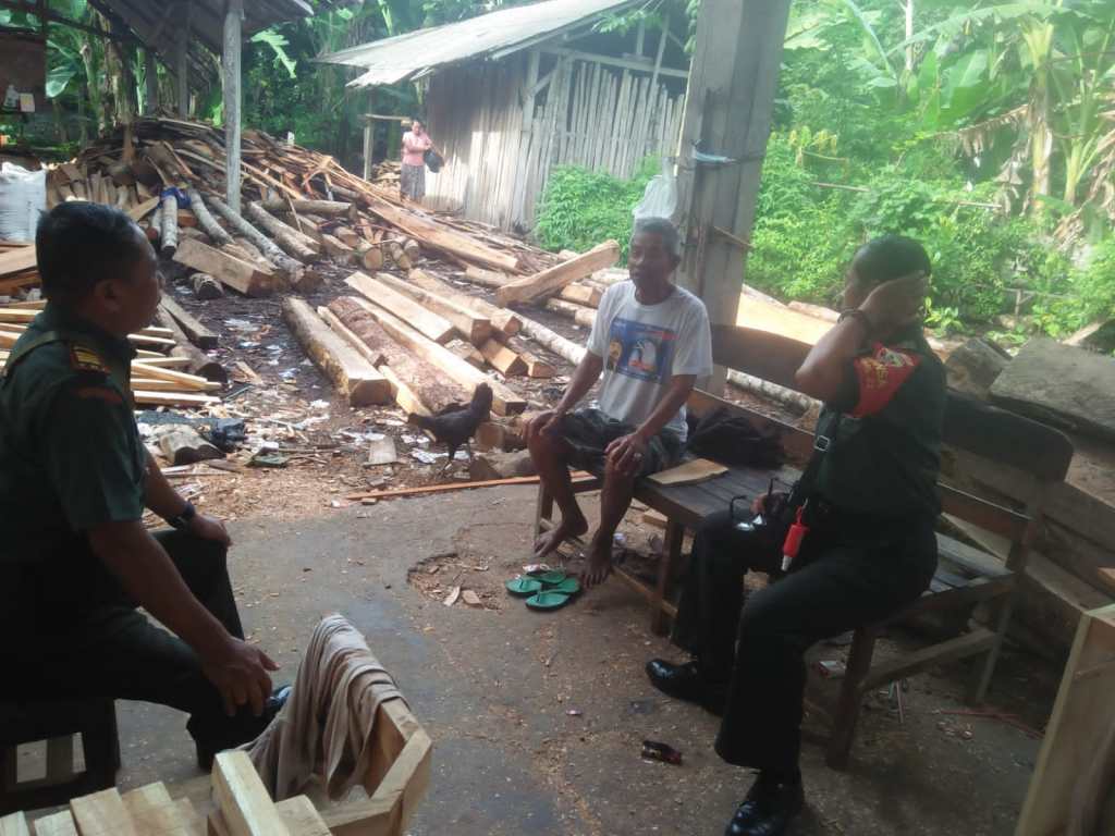 Jembrana | Babinsa Desa Pohsanten, Koramil 1617-02/Mendoyo, Pelda Ida Bagus Priada mendampingi Danramil 1617-02/Mendoyo Kapten Inf Agus Muhid meninjau usaha mebel kayu milik I Putu Gare yang sempat terbengkalai akibat terdampak Covid-19 di Banjar Munduk, Desa Pohsanten, Kec. Mendoyo, Kabupaten Jembrana, Rabu (25/01/2023)