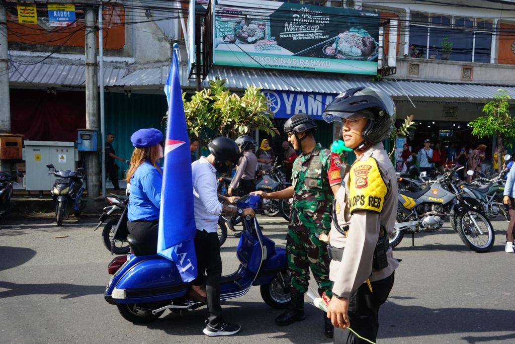 Jembrana | Dandim 1617/Jembrana Letkol Inf Teguh Dwi Raharja S.Sos hadiri Touring Pemilu 2024 dengan menggunakan Sepeda Motor dalam Rangka Sosialisasi Satu Tahun Menjelang Hari Pemungutan Suara Pemilu Serentak Tahun 2024 bertempat di Kantor KPU Kab. Jembrana, Jln. Udayana No 40, Kel. BB Agung, Kec. Negara, Kab. Jembrana, Selasa (14/02/2023)