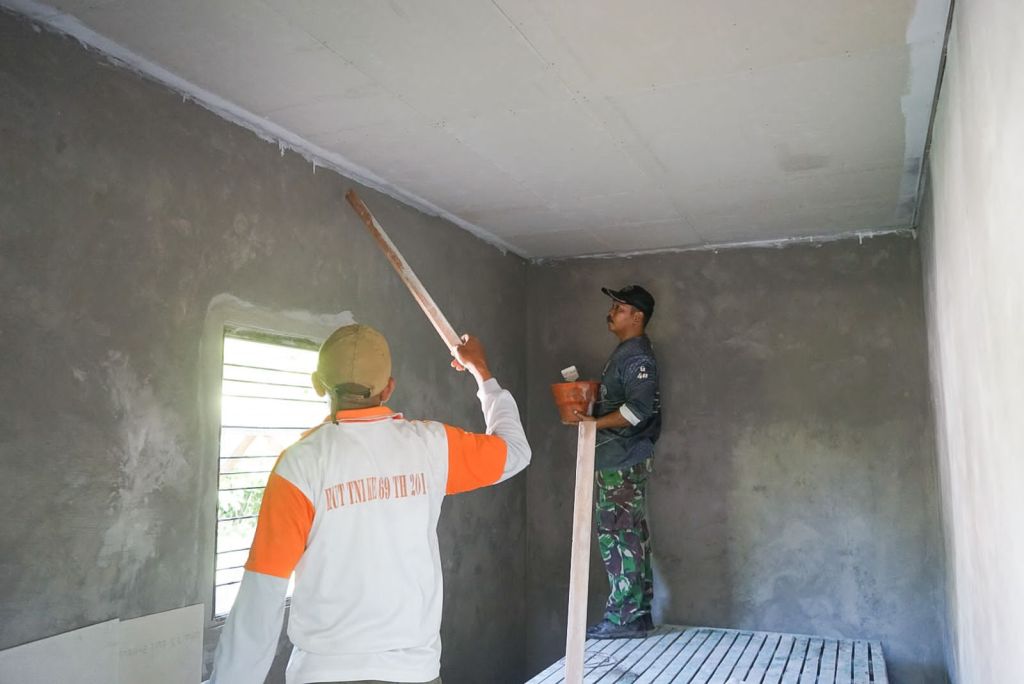 Untuk tahapan kali ini, pekerjaan sudah mencapai tahap pemasangan keramik dan pengecatan dinding bagian dalam yang menandakan progres sudah mencapai tahap akhir. Serma I Komang Soyen selaku kepala tukang di Desa Kaliakah mengaku tetap optimis bahwasanya pekerjaan akan tetap selesai tepat waktu.