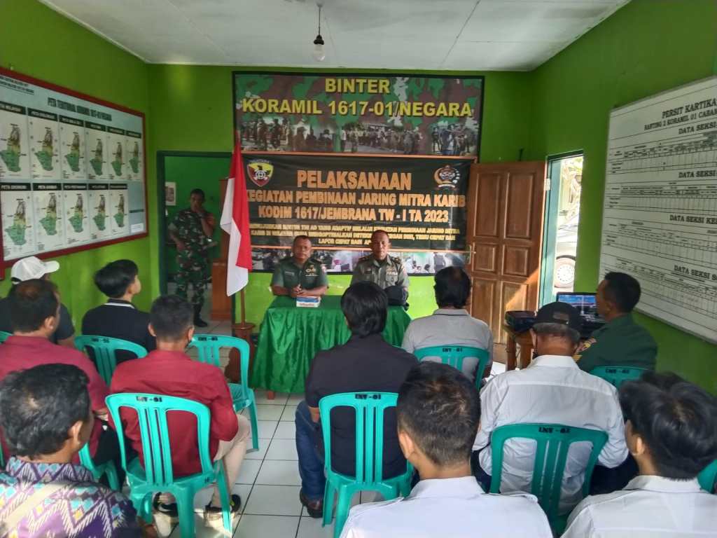 Selain itu kegiatan pembinaan Jaring Mitra Karib Kodim 1617/Jembrana TW I TA. 2023 yang digelar oleh Koramil 1617-01/Negara bertujuan untuk mewujudkan Kemanunggalan TNI dengan rakyat dalam mencapai tugas pokok sebagai Aparat Komando Kewilayahan (Apkowil). Babinsa sebagai Ujung tombak Apkowil hendaknya memiliki kemampuan didalam memecahkan setiap permasalahan.