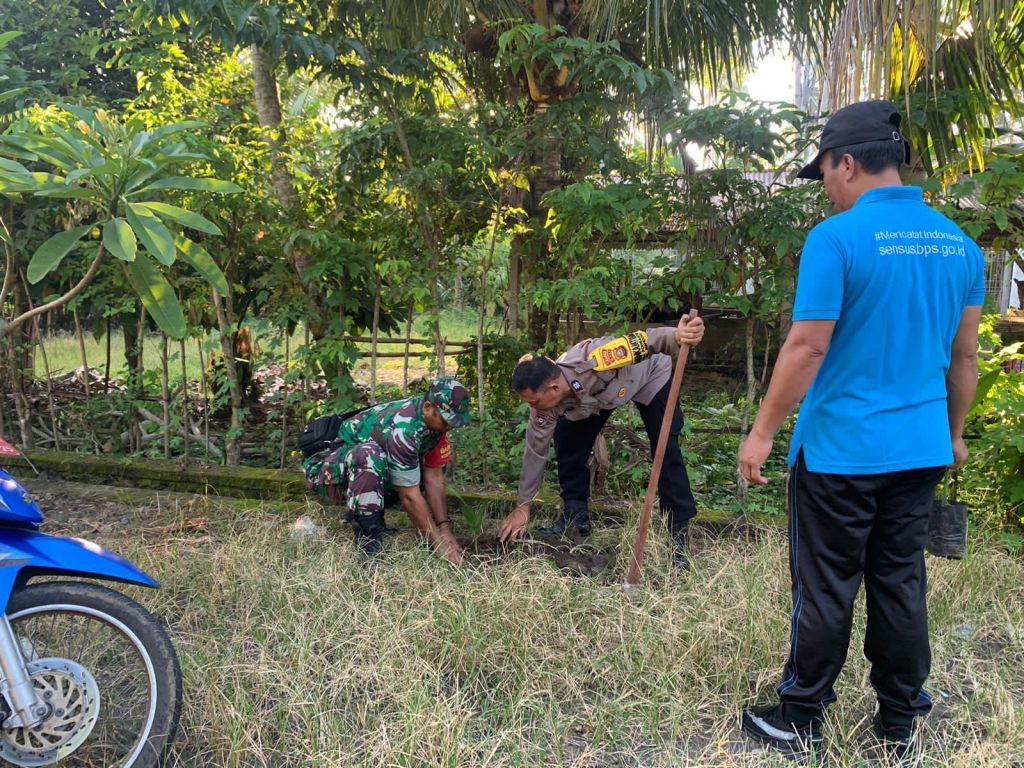 Peringati Hari Desa Asri Nusantara, Babinsa Desa Pohsanten Turut Serta Menanam Pohon Pinang