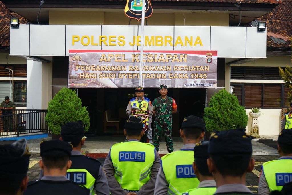 Dalam sambutannya Letkol Inf Teguh Dwi Raharja, S.Sos selaku Dandim 1617/Jembrana mengucapkan Puji syukur kepada Tuhan Yang Maha Esa karena masih diberikan kesehatan sehingga semuanya dapat mengikuti Apel Kesiapan Pengamanan dalam rangkaian hari raya Suci Nyepi dan menyambut bulan suci Ramadhan Tahun 1444 Hijriah. Letkol Teguh juga mengatakan bahwa di Kabupaten Jembrana ini hampir lengkap Agama yang dianut warga masyarakat ada Hindu Budha, Kristen Protestan, Kristen Katolik, Islam dan Konghucu semuanya saling bertoleransi.