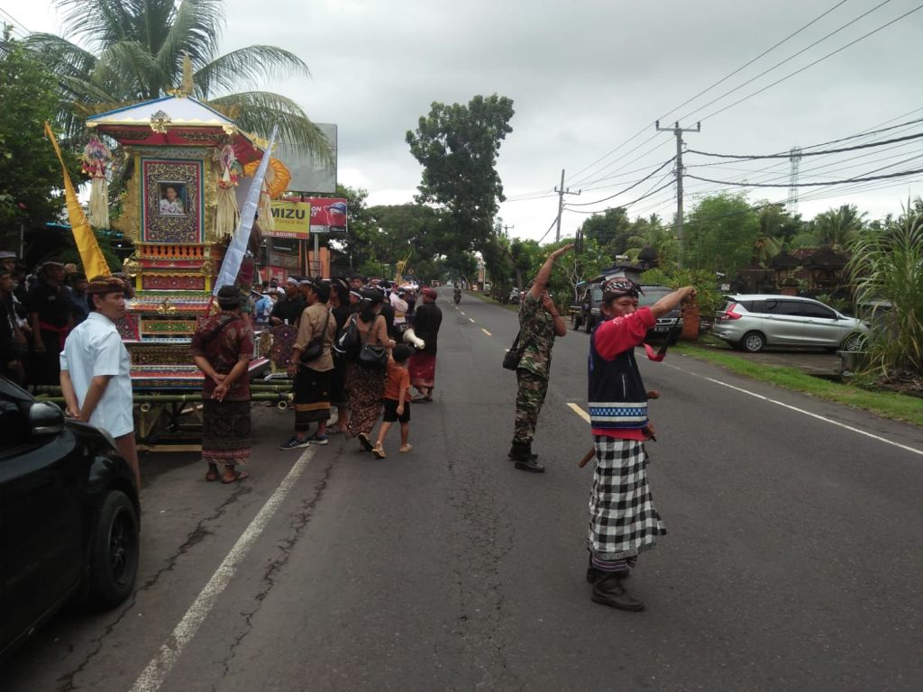 Menurut keterangan Babinsa, kehadirannya dalam memberikan pengamanan agar prosesi pengabenan warganya dapat berjalan dengan aman dan lancar. Pengamananpun dilakukan saat mulai dari pemberangkatan Jenasah dari rumah duka menuju setra (kuburan) serta membantu mengatur lalu lintas agar tidak menimbulkan kemacetan.