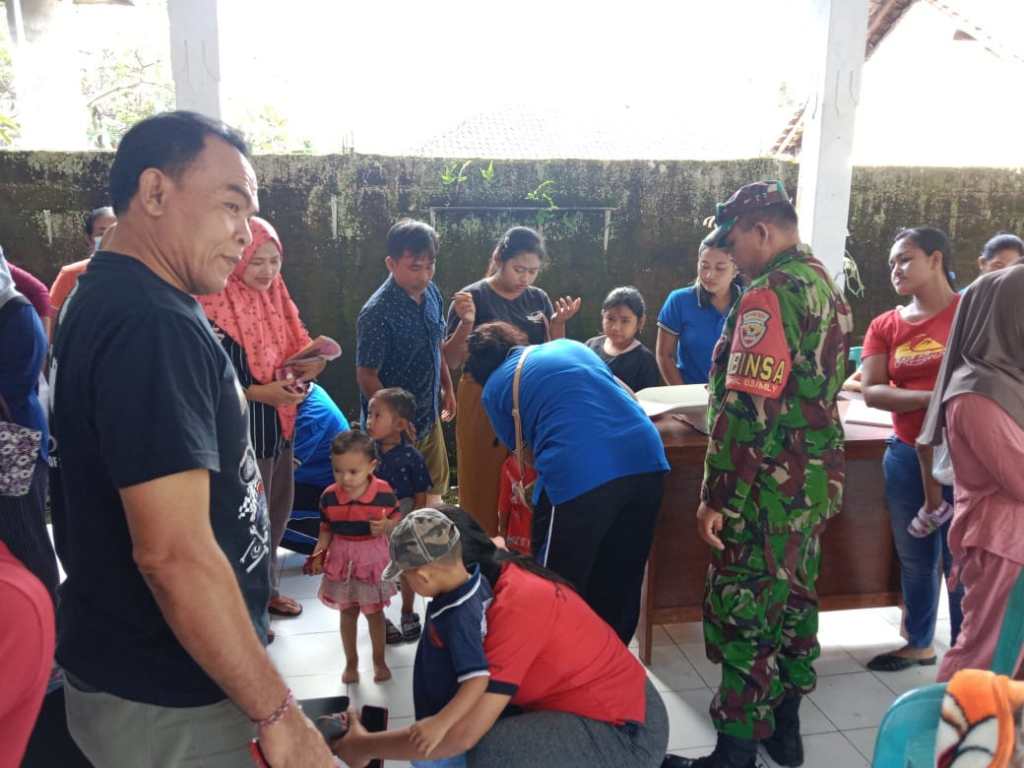 Jembrana | Guna mewujudkan Balita sehat, Babinsa Desa Candikusuma Koramil 1617-03/Melaya, Serka Dewa Budiwilantara turut serta melakukan pendampingan dan pemantauan sekaligus membantu Bidan Desa dalam kegiatan Posyandu Balita dimana kegiatan tersebut rutin dilaksanakan di setiap bulannya. Kegiatan Posyandu kali ini dilaksanakan di Banjar Candikusuma, Desa Candikusuma, Kecamatan Melaya, Kabupaten Jembrana, Sabtu (13/05/2023).