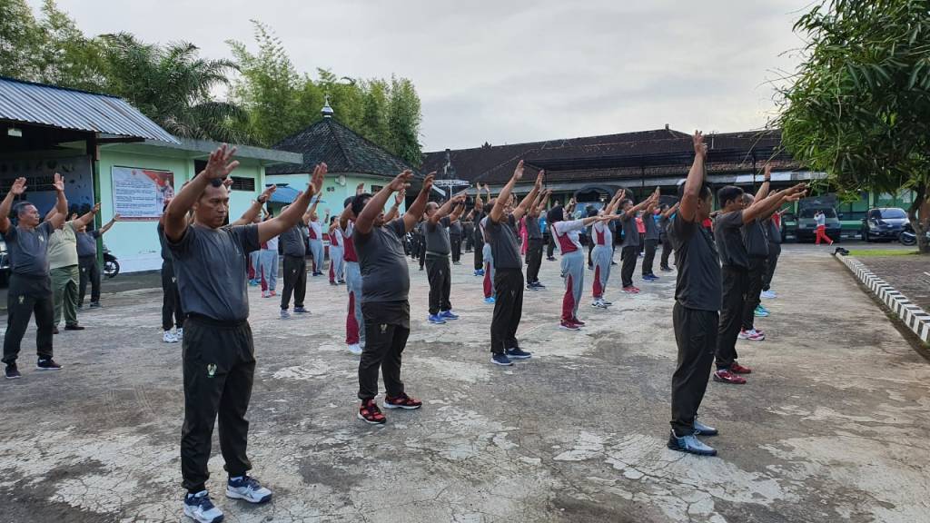 Jembrana | Anggota Kodim 1617/Jembrana, setiap hari Jum’at sebelum memulai aktivitas Kantor dan kegiatan di wilayah rutin melakukan Senam dan olahraga bersama di lapangan Makodim 1617/Jembrana, yang diikuti oleh seluruh anggota Kodim 1617/Jembrana baik Militer, PNS beserta Ibu ibu Persit Kartika Chandra Kirana Cabang XXXVI Kodim 1617/Jembrana. Jum’at (14/07/2023).