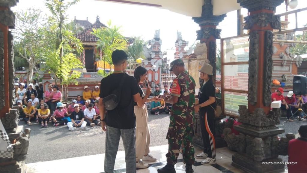 Jembrana | Babinsa Desa Ekasari Koramil 1617-03/Melaya Sertu I Wayan Suarna bersinergi dengan Babhinkamtibmas dan Polprades turut mengamankan kegiatan jalan santai dalam rangka memperingati HUT Sekehe Truna Truni “Cipta Dharma” Banjar Anggasari, Desa Ekasari, Kecamatan Melaya, Kabupaten Jembrana. Minggu (16/07/2023)