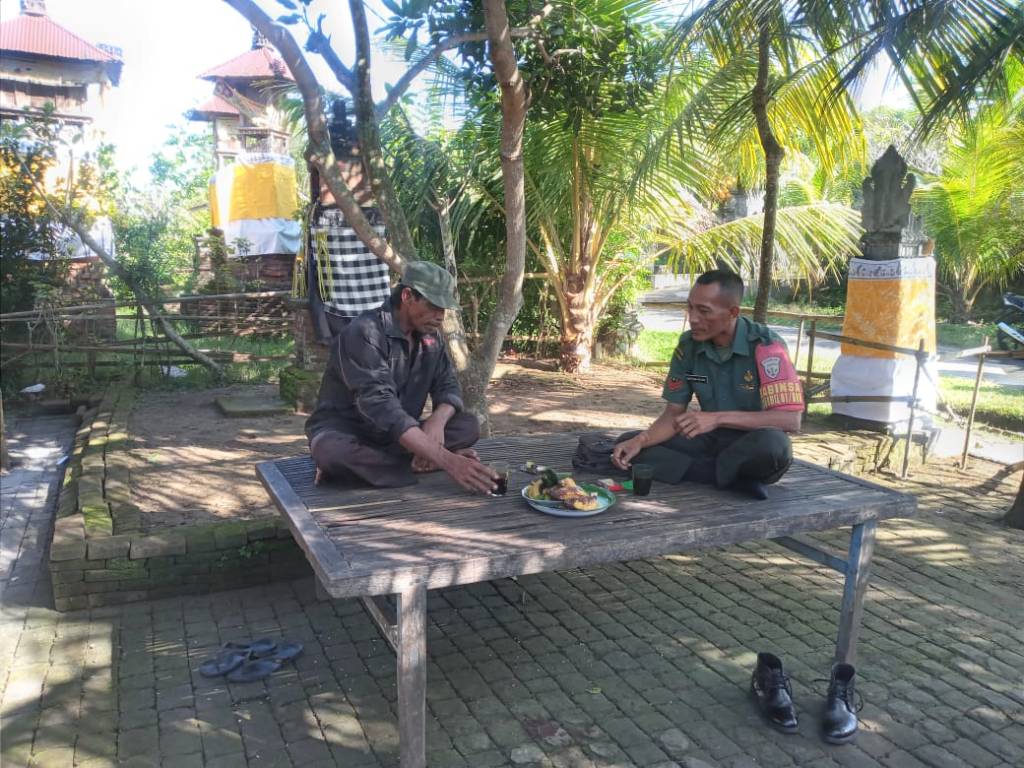 Jembrana | Babinsa Desa Tegal Badeng Timur, Koramil 1617-01/Negara, Kopka Bahtiar Hasan melaksanakan kegiatan rutin yaitu Komunikasi Sosial dengan warga binaanya atas nama Ketut Sumadi yang sedang berada di kediamannya di Banjar Tegalbadeng, Desa Tegalbadeng Timur, Kecamatan Negara, Kabupaten Jembrana. Kamis (20/07/2023)