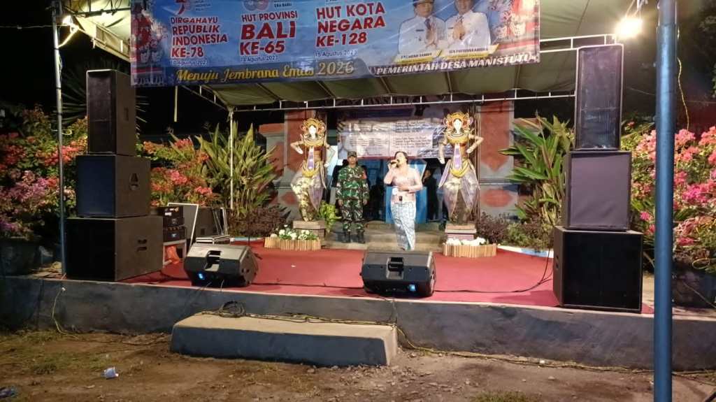 Disela sela acara Babinsa Desa Manistutu Serda I Kade Wirawa mengatakan “Astungkare kegiatan dapat berjalan dengan aman dan lancar, mari melalui acara ini, kita tumbuhkan sikap peduli dan bangga Jembrana, aman bersatu membangun di berbagai bidang, khususnya kesenian pencarian bakat ini bisa memunculkan bibit penyanyi yang handal,” ujarnya Kade Wirawa. (Pendim Jbr/Red).