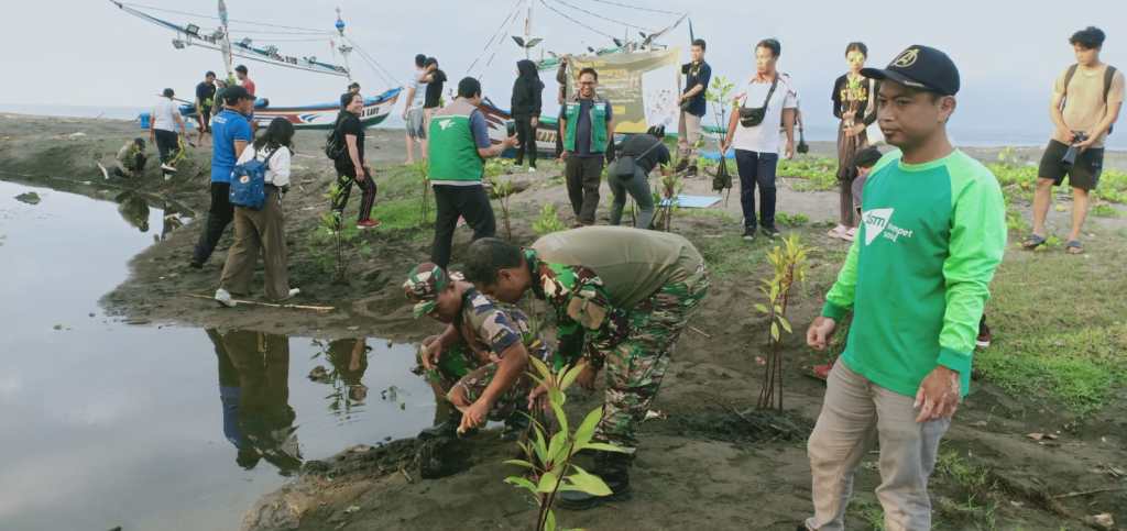 Jembrana | Bertempat di Pesisir Pantai Banjar Melaya Pantai, Desa Melaya, Kecamatan Melaya, Kabupaten Jembrana, Anggota Koramil 1617-03/Melaya bersama sama dengan Yayasan “Dompet Sosial Madani”, Aparat Kecamatan, Aparat Pemerintahan Desa Melaya dan Instansi terkait lainnya melaksanakan penanaman pohon Mangrove. Jumat (25/02023).
