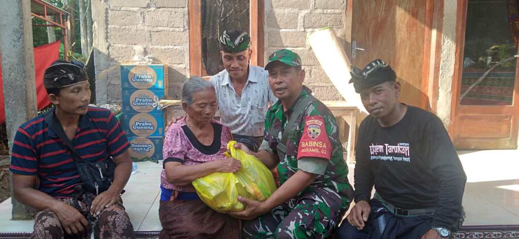 Jembrana | Babinsa Desa Yehsumbul, Koramil 1617-02/Mendoyo Pelda Ida Bagus Gede Priada didampingi Bati Logistik Kodim 1617/Jembrana Peltu I Made Sri Antara bersama Instansi terkait lainnya menyalurkan langsung pemberian paket sembako kepada warga masyarakat kurang mampu di Desa Yehsumbul, Kecamatan Mendoyo, Kabupaten Jembrana. Senin (28/08/2023)