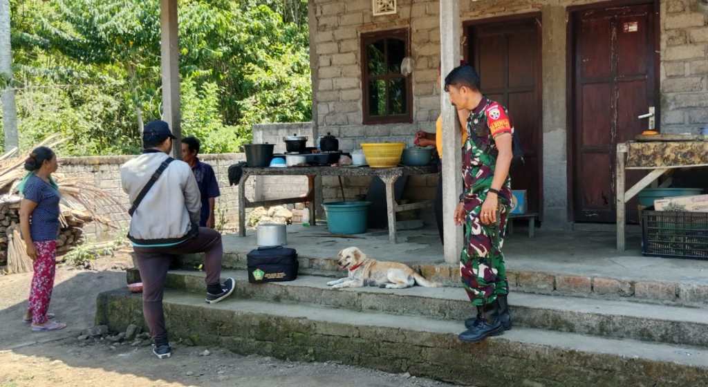 Jembrana | Dalam rangka mencegah penyebaran Penyakit Rabies yang bisa membahayakan keselamatan warga, Babinsa Kelurahan Tegal Cangkring Koramil 1617-02 Serda Suwardi terjun langsung dalam mitigasi rabies melalui tindakan Vaksinasi anjing bersama petugas Dinas Kesehatan hewan dan staf Kelurahan Tegalcangkring beserta 3 orang pendamping, di Lingkungan Bilukpoh, Kelurahan Tegalcangkring, Kecamatan Mendoyo, Kabupaten Jembrana. Selasa (26/09/2023)