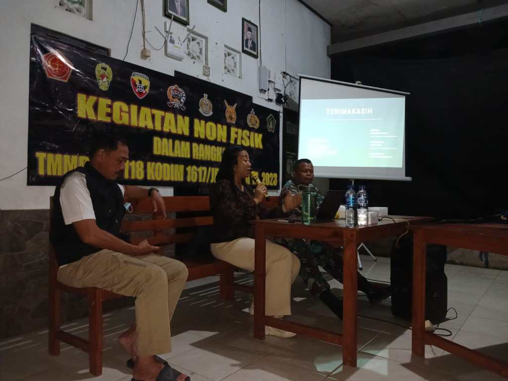 Jembrana | Pentingnya menjaga kelestarian lingkungan hidup menjadi salah satu target dalam sasaran non fisik TMMD Ke 118 Kodim 1617 Jembrana. Untuk itu Satgas TMMD memberikan penyuluhan tentang lingkungan hidup kepada warga Banjar Air Anakan, Desa Banyubiru, Kecamatan Negara, Kabupaten Jembrana, Jumat malam (29/09/2023)