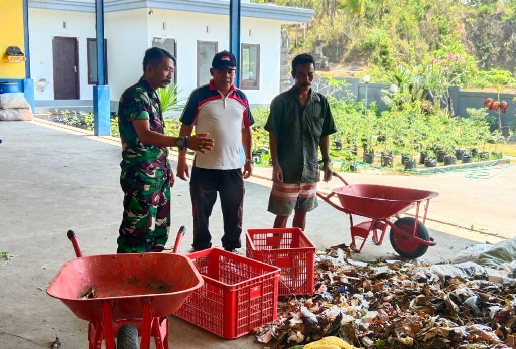 Jembrana | Babinsa Desa Mendoyo Dauh Tukad, Koramil 1617-02/Mendoyo Serda Suwardi Motivasi Pengelolaan Sampah yang Ramah Lingkungan Desa Mendoyo Dauh Tukad saat mengunjungi TPS 3R wilayah setempat, Jumat (20/10/2023).
