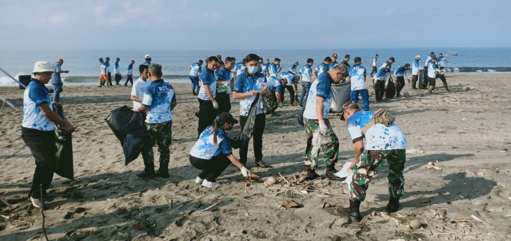 Jembrana | Bertempat di Pantai sebelah Tambak TNI Angkatan Laut, Desa Pengambengan, Kecamatan Negara, Kabupaten Jembrana, Kasdim 1617/Jembrana Mayor Inf I Gede Putu Wira Mahardika beserta Anggota mengikuti kegiatan BCL (Bulan Cinta Laut) dalam rangka gerakan bersih pantai & laut Pelabuhan Perikanan Nusantara Pengambengan, Kamis (26/10/2023)