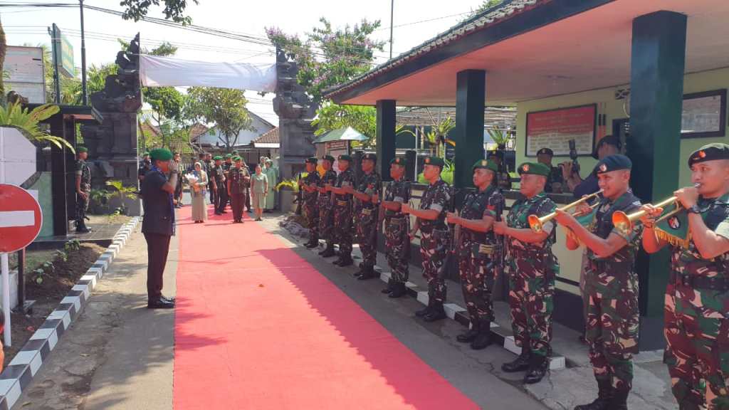 Tiba di Makodim 1617/Jembrana, Pangdam IX/Udayana dan Ketua Persit KCK PD IX/Udayana berserta rombongan disambut oleh Dandim 1617/Jembrana Letkol Inf Teguh Dwi Raharja, S.Sos., beserta perwira staf dilanjutkan pengalungan Kain songket khas Jembrana dan menerima jajar kehormatan.