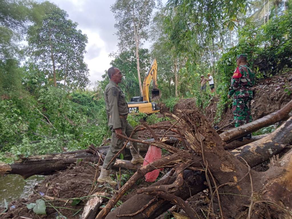 Jembrana | Babinsa Desa Kaliakah Koramil 1617-01/Negara Serda Putu Eka Adnyana bersinergi dengan Polisi Pradesa Desa Kaliakah Pande Putu, melaksanakan kegiatan monitoring normalisasi Sungai yang dilaksanakan di Banjar Kaliakah, Desa Kaliakah, Kecamatan Negara, Kabupaten Jembrana. Selasa (14/11/2023)