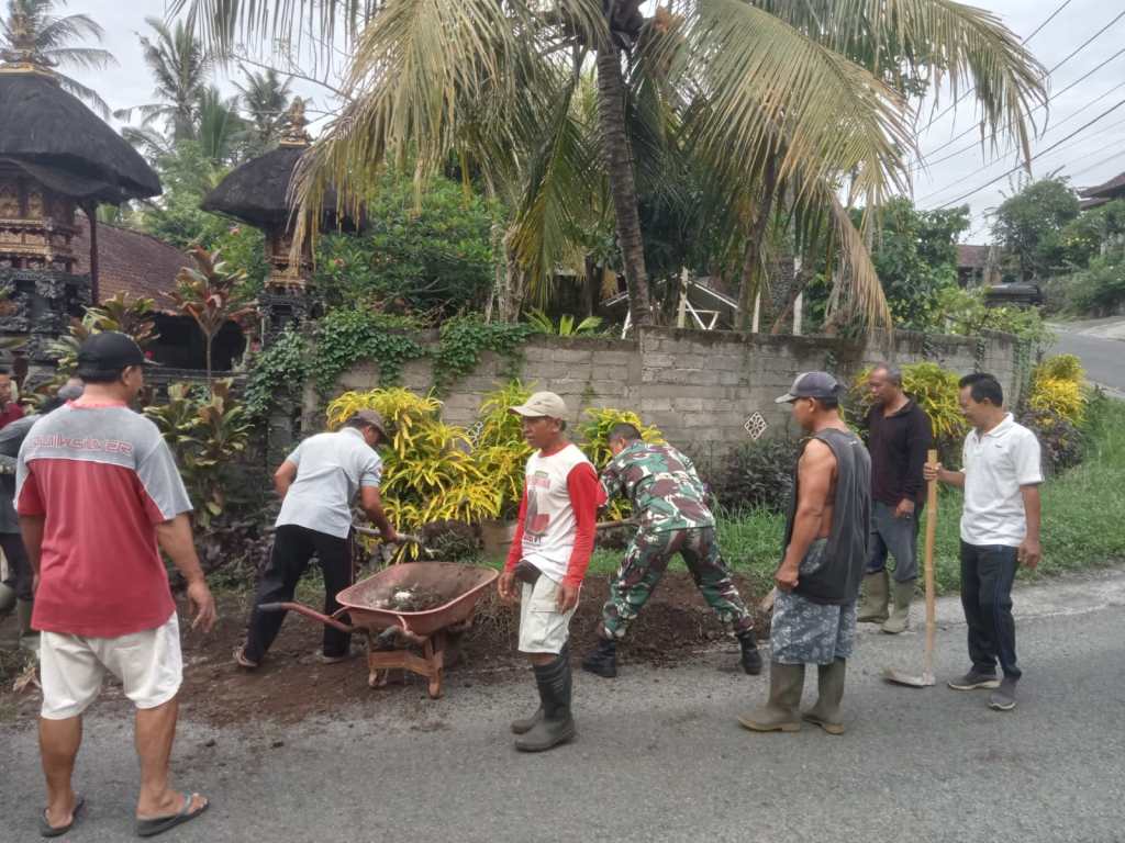 Jembrana | Bertempat di Banjar Munduk Anggrek Desa Yehembang Kauh, Babinsa Desa Yehembang Kauh, Koramil 1617-02/Mendoyo, Sertu Zainal Efendi bersama Klian Banjar Munduk Anggrek bersama sama dengan warga di wilayah Desa Binaan melaksanakan kegiatan gotong royong Pembersihan tanah di pinggir jalan Yehembang Kauh. Minggu (03/12/2023)