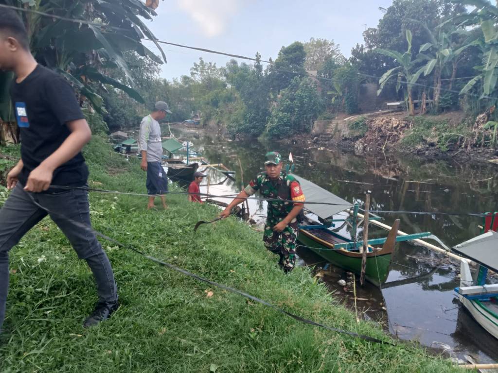 Jembrana | Bertempat di bantaran Sungai Ijo Gading Lingkungan Loloan Timur, Kelurahan Loloan Timur, Kecamatan, Kabupaten Jembrana, Babinsa Kelurahan Loloan Timur, Koramil 1617-01/Negara, Kopka Mahfud bersama Bhabinkantibmas mengikuti kegiatan Gotong royong bersih2 sungai dan penanaman pohon di bantaran sungai Ijogading bekerjasama dengan Bank BRI dan diikuti oleh warga Kel. Loloan Timur, dengan tema “Jaga Sungai, jaga kehidupan,” Senin (11/12/2023).
